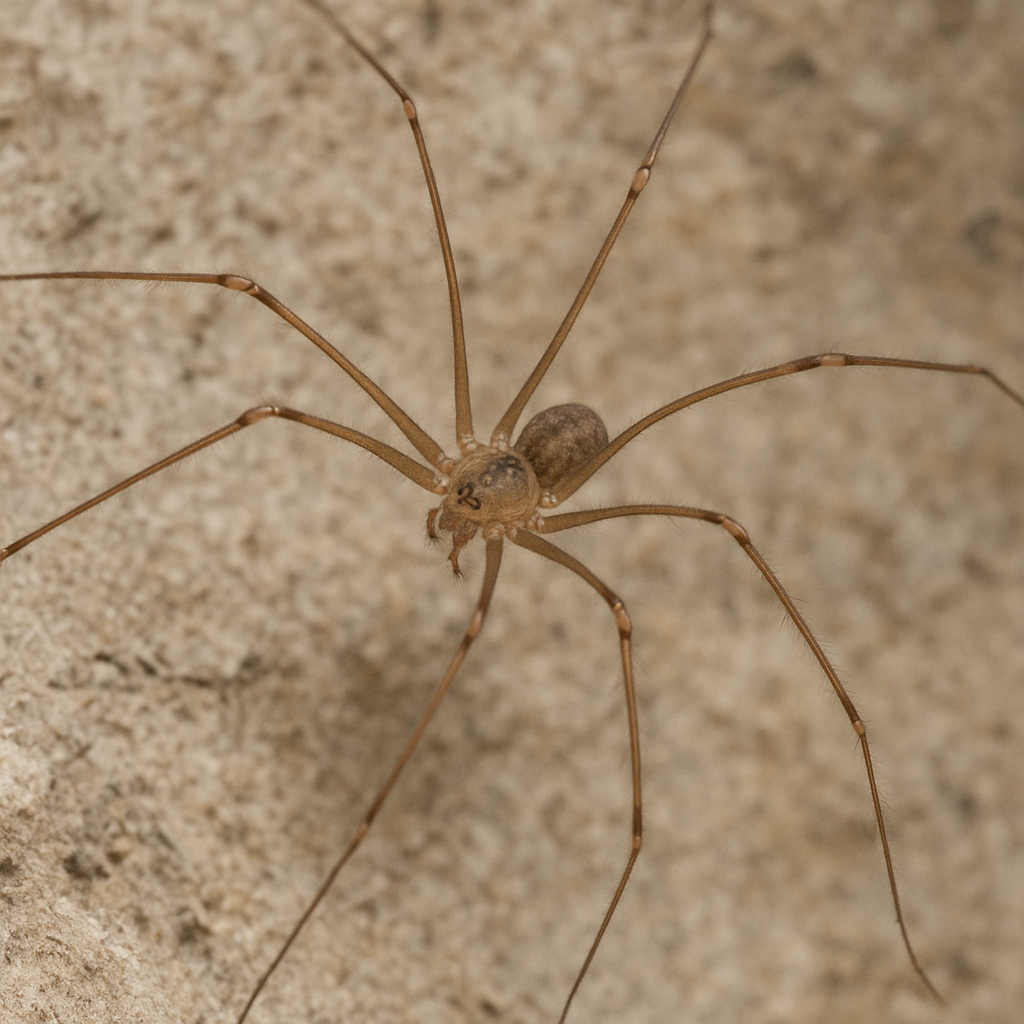 - Rozpiętość odnóży: znacznie większa niż ciało — często wynosi kilka centymetrów, a w niektórych przypadkach osiąga 5–6 cm lub więcej, co sprawia, że pająk wydaje się dużo większy niż jest w rzeczywistości.